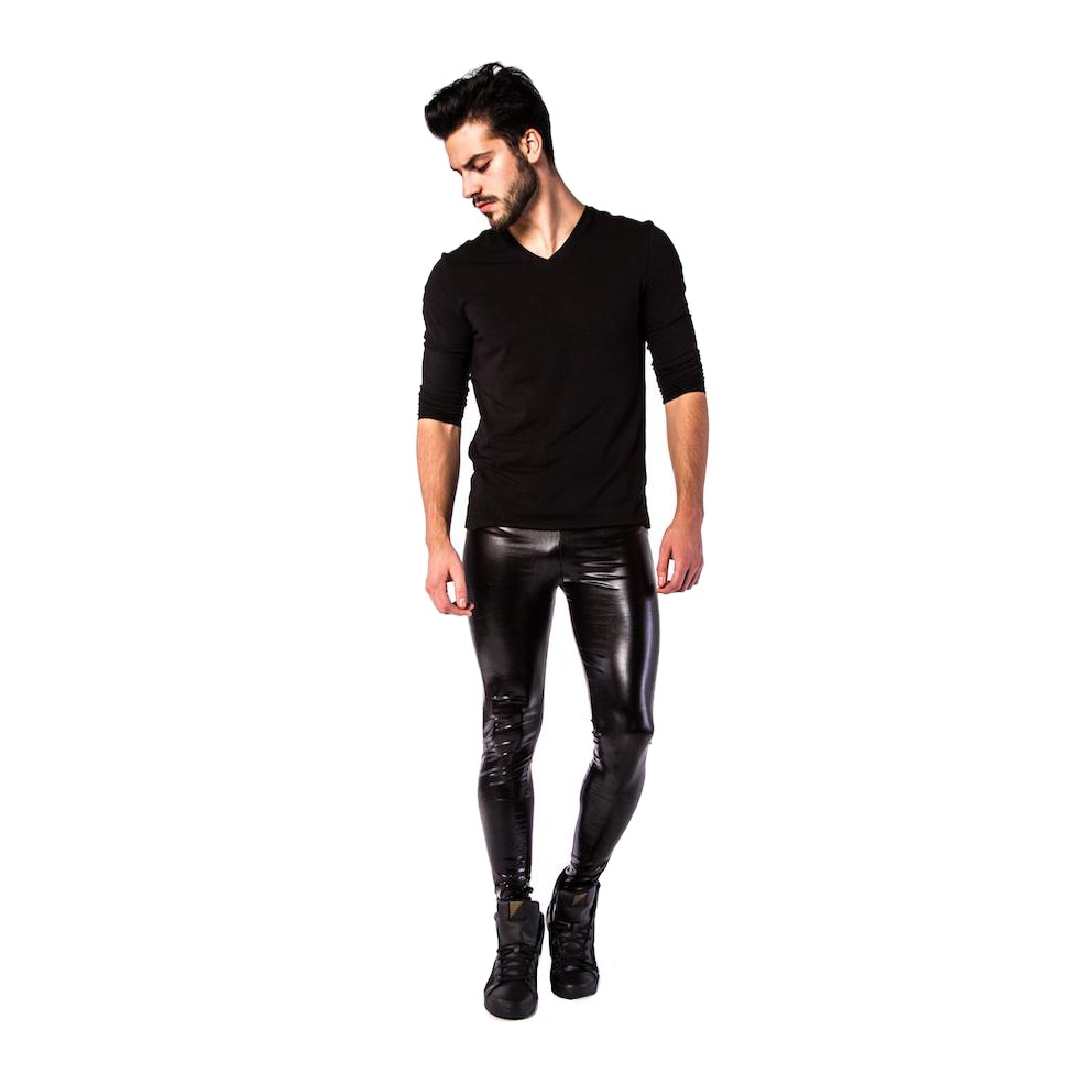 Calça de vinil clearance masculina, Cal a Megging Super Skinny em Vinil Original Extra Brilho Preta clearance