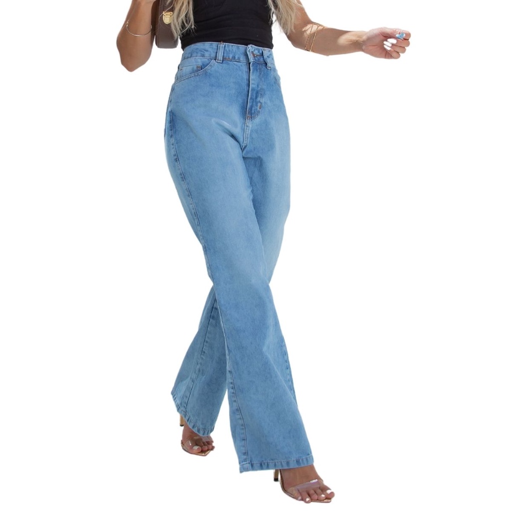 Wide Leg Pantalona Lisa Jeans Claro Cal a Feminina Larguinha