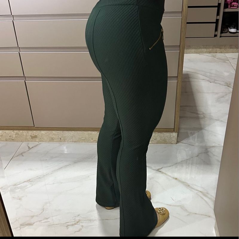 Calça flare tecido clearance neoprene, Cal a Flare Verde Militar sem Bolso com Z per Na Frente Tecido Encorpado E Cal a Feminina Maria Neuma Nunca Usado 93515445 enjoei clearance