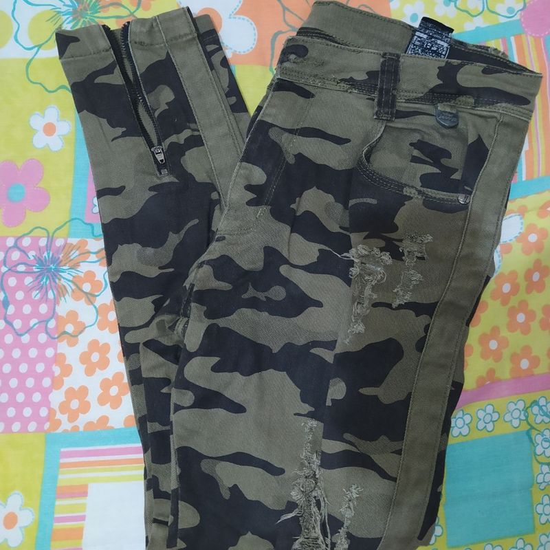 Cal a Jeans Masculina Camuflada Militar Slim Fit Destroyed