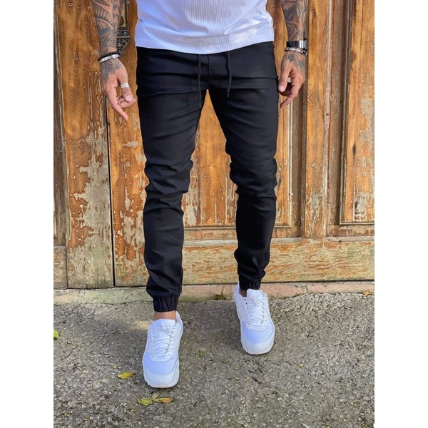 Cal a Jeans preta jogger C Lycra Moda Masculina