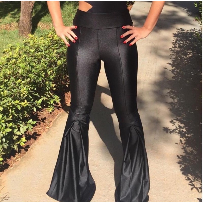 Calça de couro clearance feminina flare, Cal a Flare em Cirre Couro Fake Boca de Sino clearance