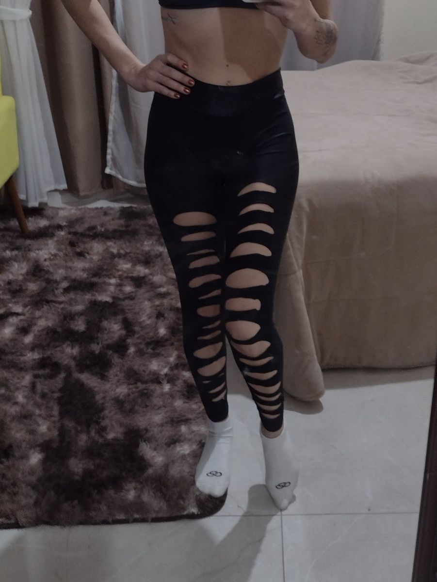 Cal a Legging Cirr Esportivo Rasgada Laser Preta Cal a