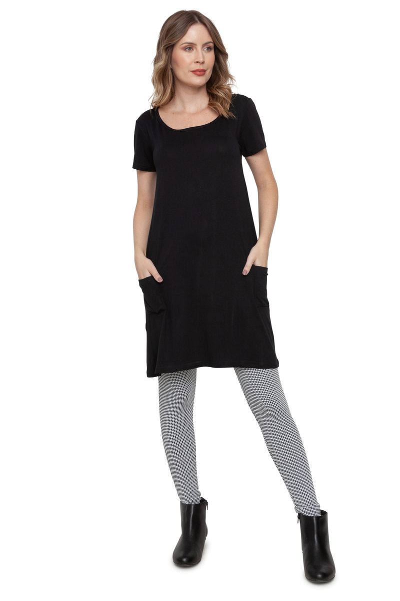 Vest Legging Feminina Casual Liso Manga Curta Alongada Com Bolso Preta