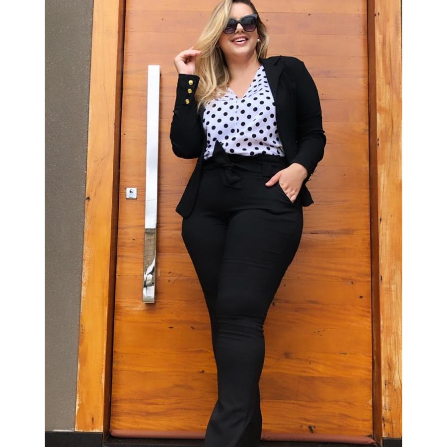 Cal a Plus Size Alfaiataria Reta Preta Vk Moda Plus Size