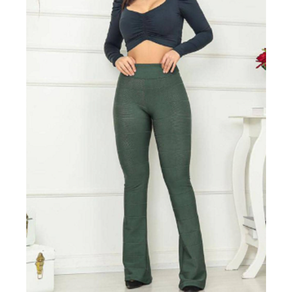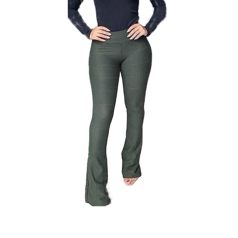 Calça bandagem verde clearance militar, Cal a Legging Bandagem de Poli ster Flare B sica Cal a Feminina clearance