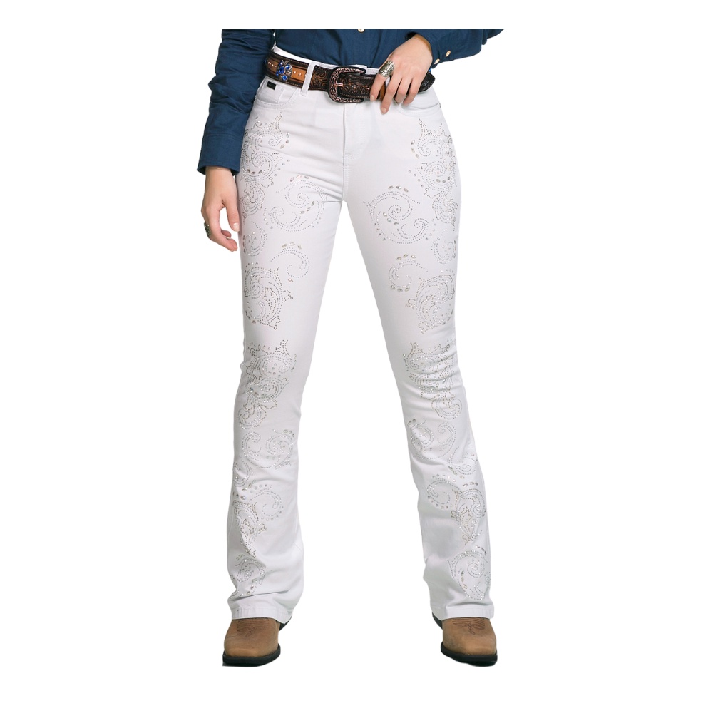Cal a Country Feminina Bill Way Original Branca Flare Com Brilho Em Toda Parte Frontal