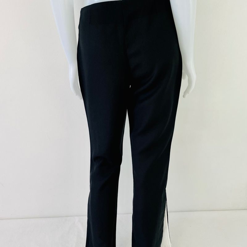 Calça flare preta clearance com listra branca, Cal a Flare Preta Feminina com Fenda Listra Branca 604 Cal a clearance