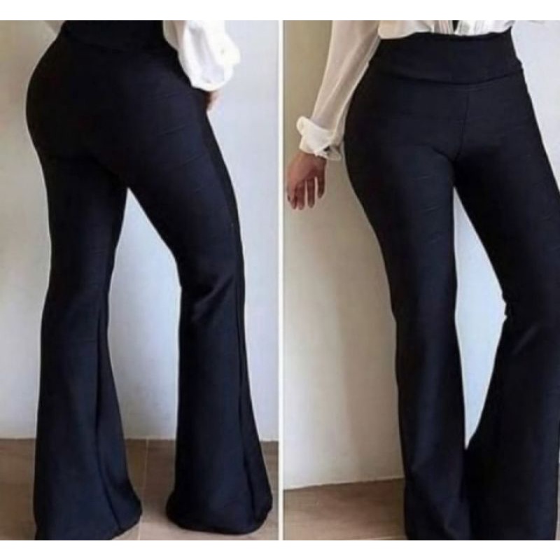 Cal a flare bandagem feminina cintura alta tecido grosso Shopee