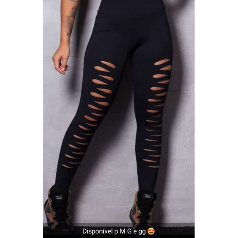 Calça clearance leg rasgadinha, Cal a Legging Preta Rasgada Legue Fitness clearance