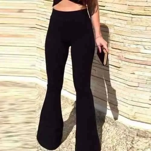 Cal a Legging Leg Flare Preta Suplex de Cintura Alta Boca de Sino