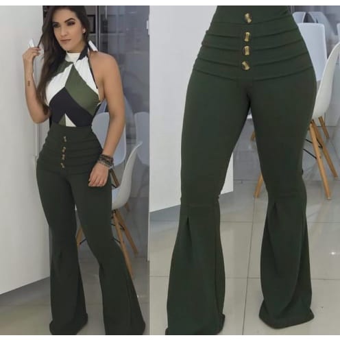 Cal a Fler Flare Feminina Boca de Sino Cintura Alta Malha Crepe Bot es Moda Feshion