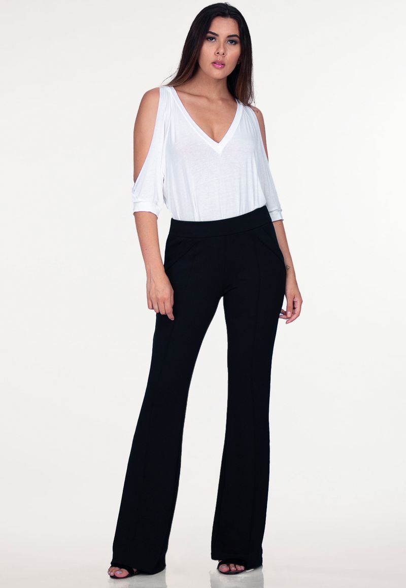 Calça preta flare clearance malha, CAL A FEMININA PRETA SOCIAL FLARE LOOPER LOJA VOLARIUM clearance