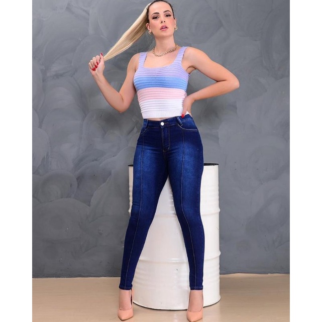 Cal a Ri19 Jeans Feminina Escura Levanta Bumbum com Lycra Ane