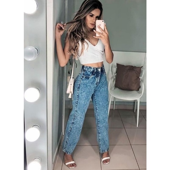 cal a jeans feminina em tecido de algod o sem lycra cintura alta estilo mom lavagem texturizada mesclada