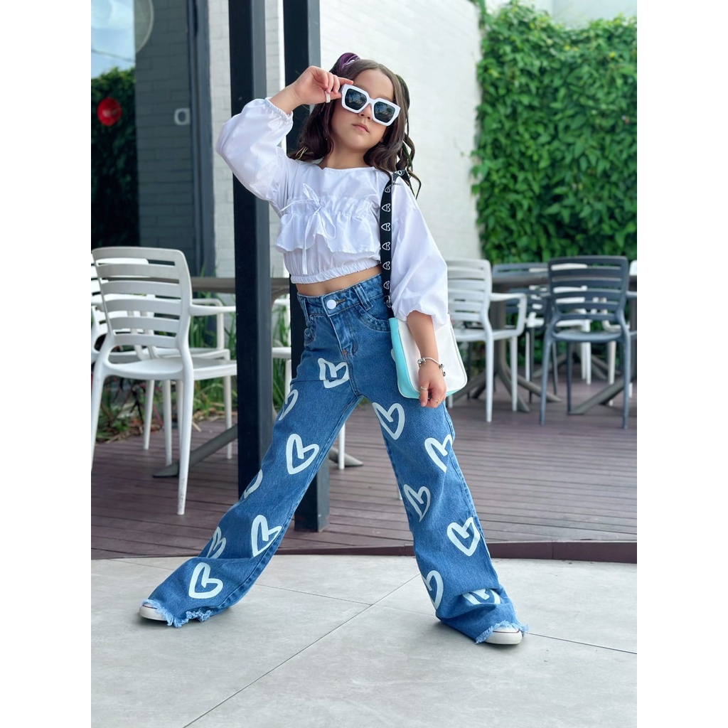 Cal a jeans wid leg estampa cora o branco infantil mini diva blogueirinha menina