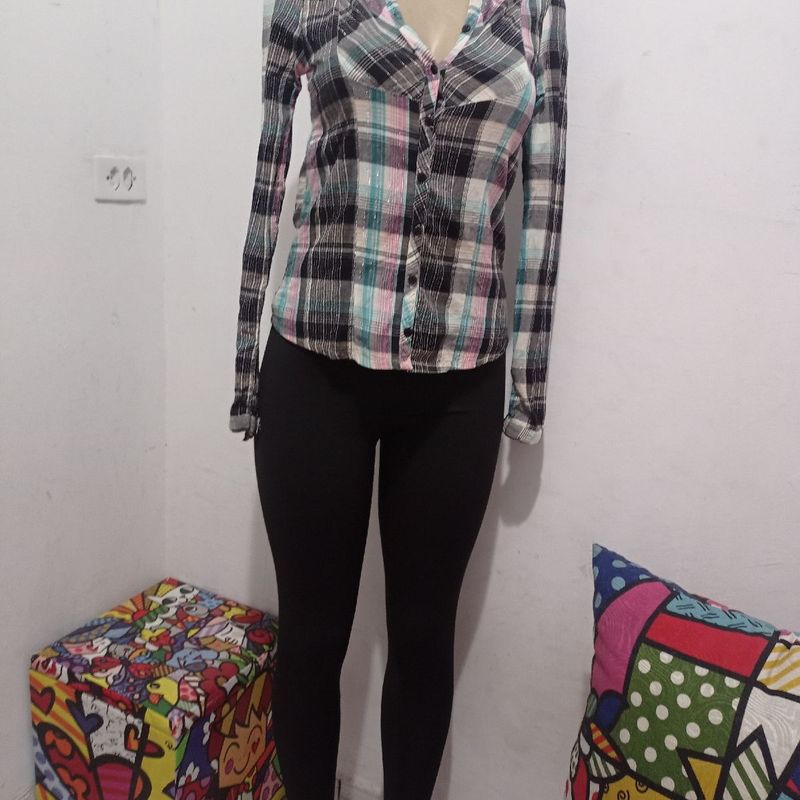 Legging com camisa clearance xadrez, Look Xadrez Camisa Feminina Camisa Xadrez E Legging Usado clearance