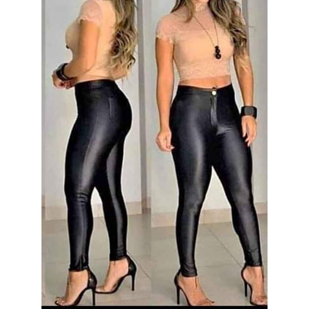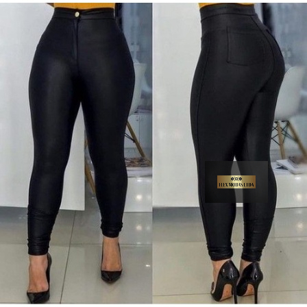 Calca cirre cintura clearance alta com bolso, Cal a Legging Disco Cintura Alta Cirre Couro Fake Bolsos Skinny clearance