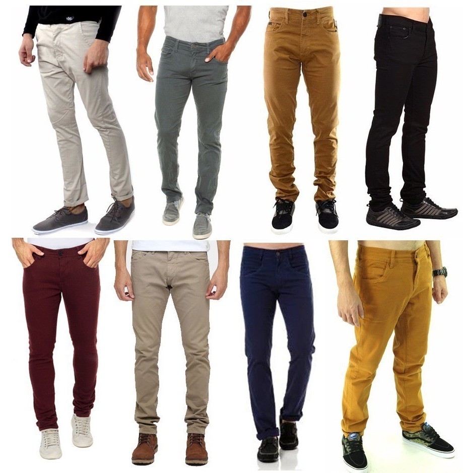 Calças jeans masculinas clearance coloridas, 2 Unid Cal a Sarja Brim Com Lycra Masculina Colorida Frete gr tis clearance
