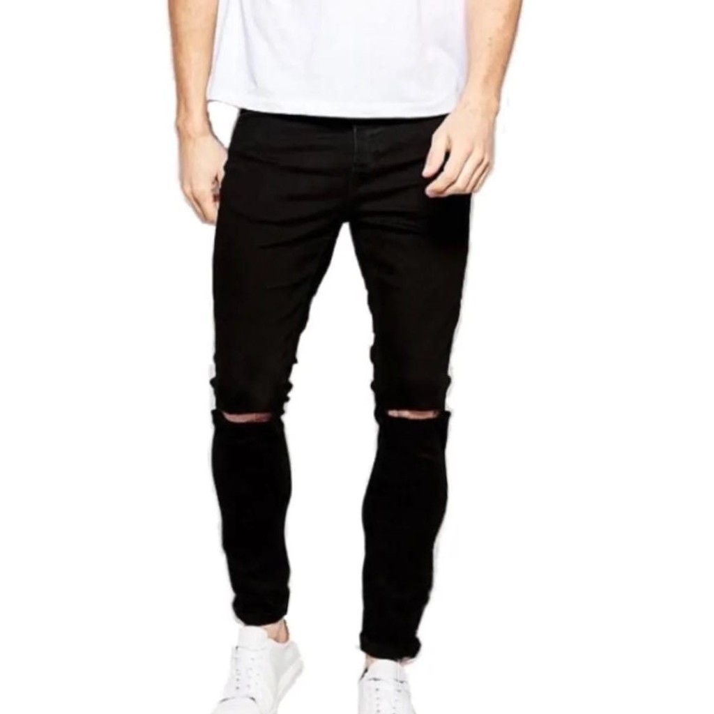 Cal a Masculina Slim Preta Rasgada no Joelho Shopee Brasil