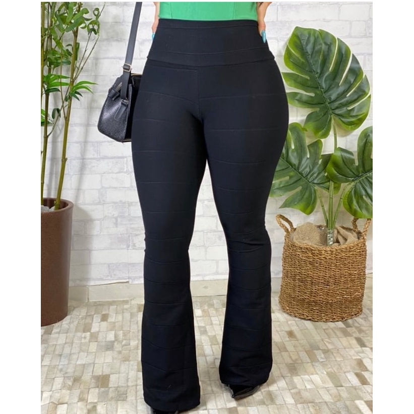 Cal a Bandagem Flare Feminina Boca Sino Cintura Alta tecido Grosso