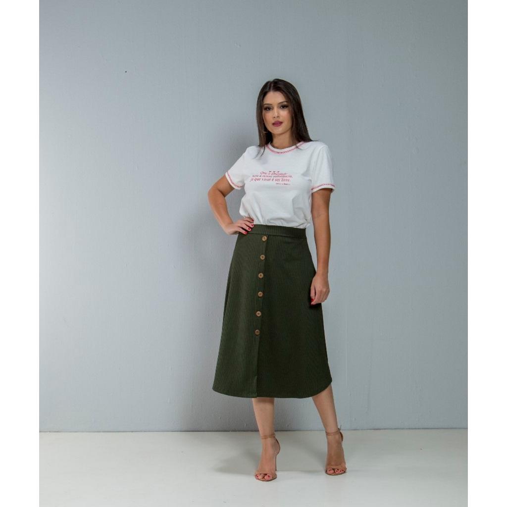 Saia clearance verde musgo, Saia Com Pespontos Duo Colors Verde Militar Fasc niu s Moda clearance