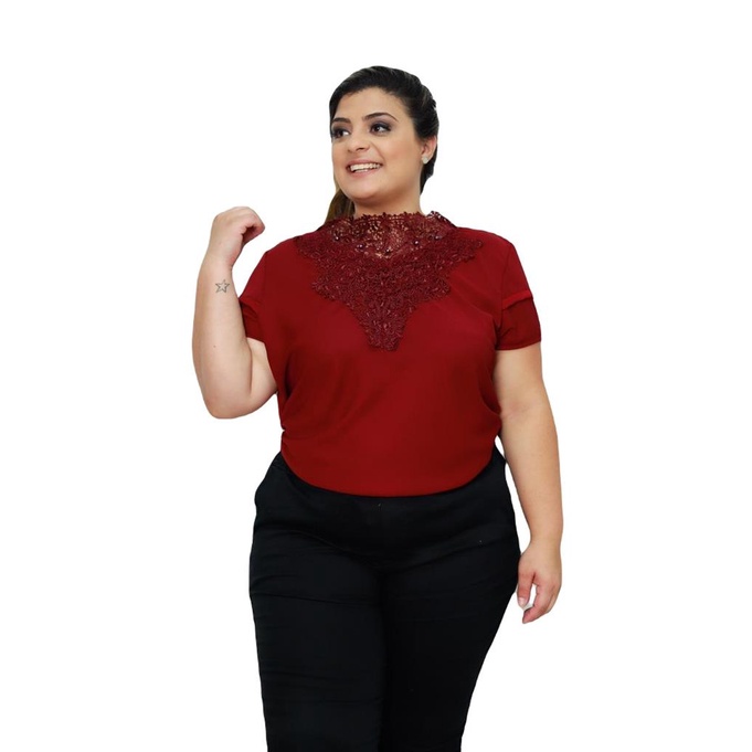 Blusa Plus Size Barata na Viscolycra com Guipir Atacado 44 Goi nia