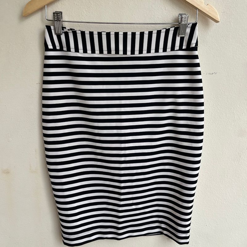 Saia listrada preta clearance e branca