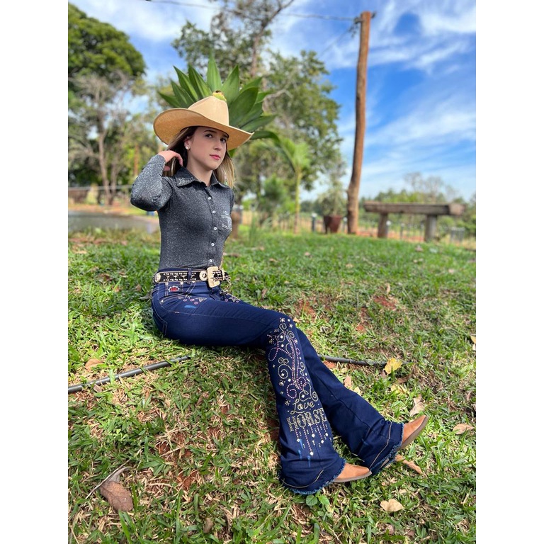Roupa clearance feminina country, Cal a Feminina West Moda Country Brilhos Love Horse em Strass clearance