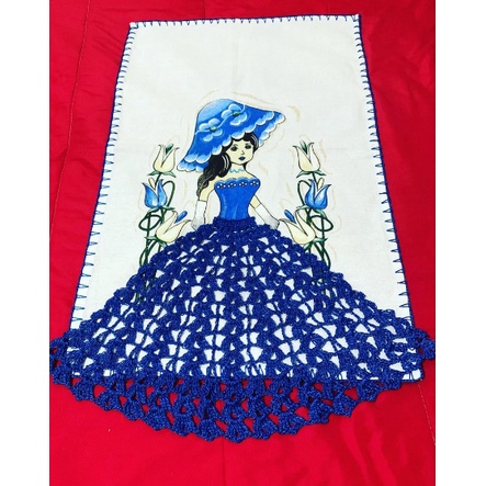 Pano de prato de boneca com saia de croche 10 Pano De Cozinha