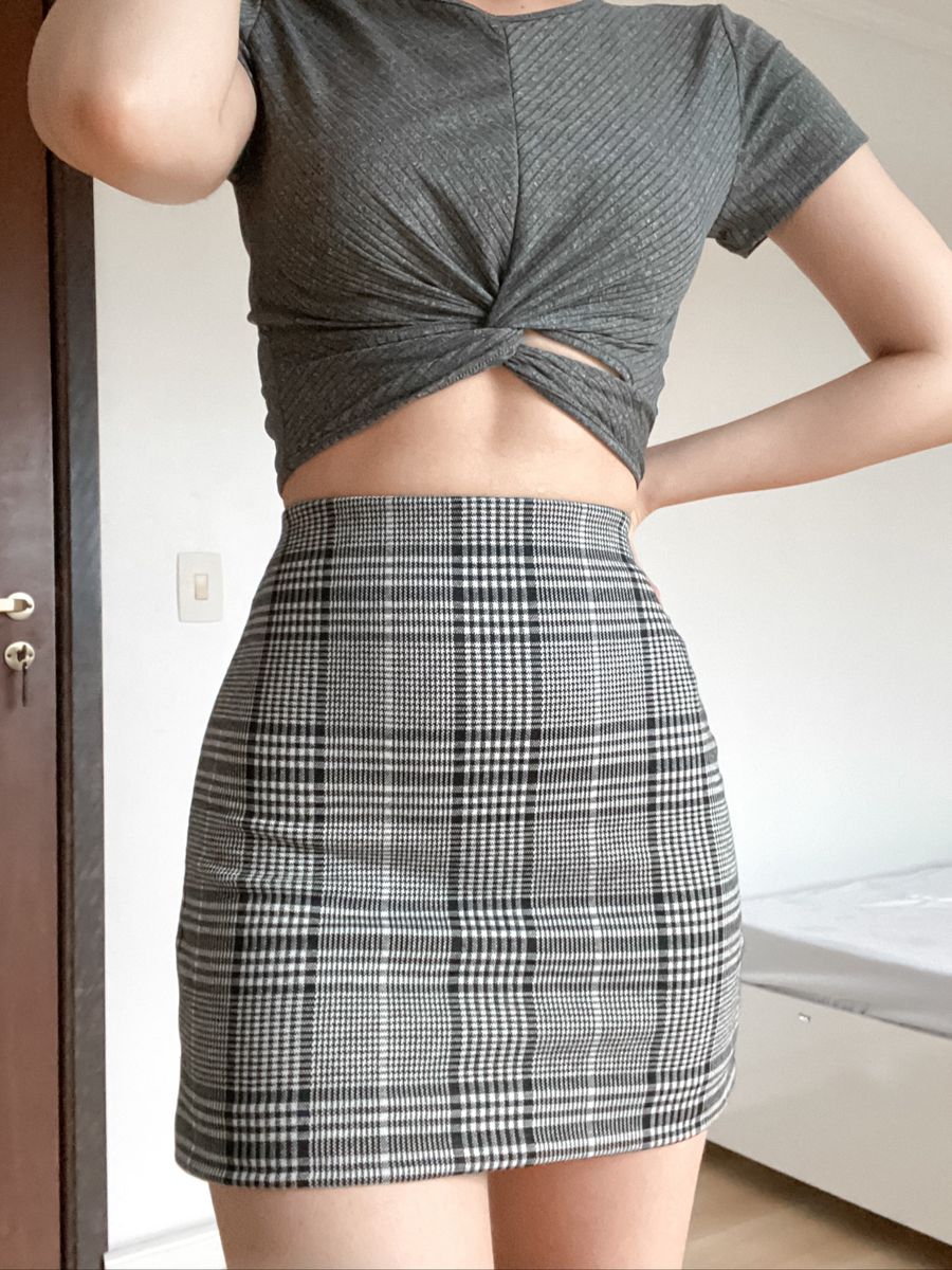 Saia Xadrez Justa Cintura Alta Forever 21 Saia Feminina Forever 21 Nunca Usado 46956268 enjoei