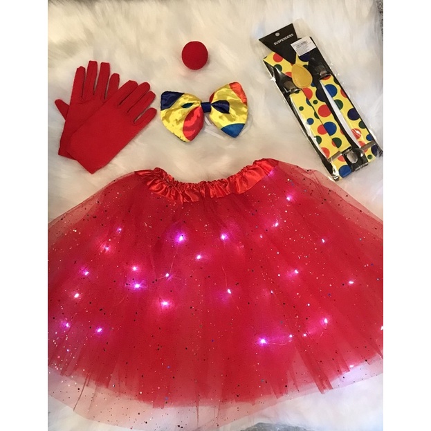 Fantasia Palhacinho Adulto Feminina com Tiara Suspens rio Gravata Saia e Nariz de Palha o