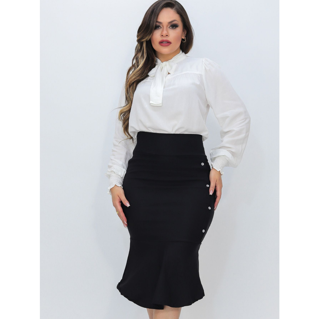Conjunto Blusa Branca E Saia Preta Social Moda Feminina Evang lica