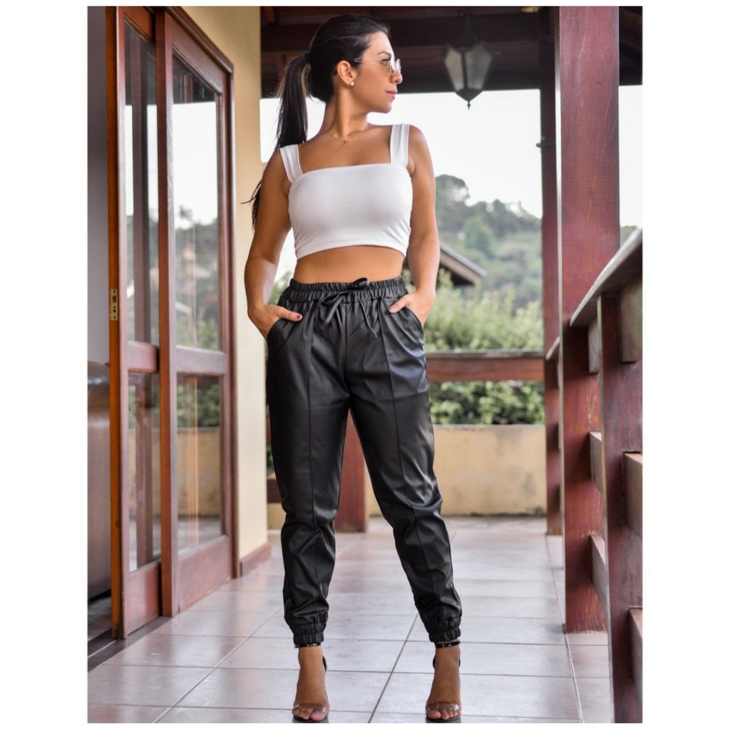 CAL A JOGGER COURO FAKE COM ELASTICO NA CINTURA