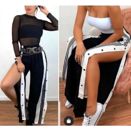 Cal a Jogger Preta e branca Com bot es na Lateral aberta toda
