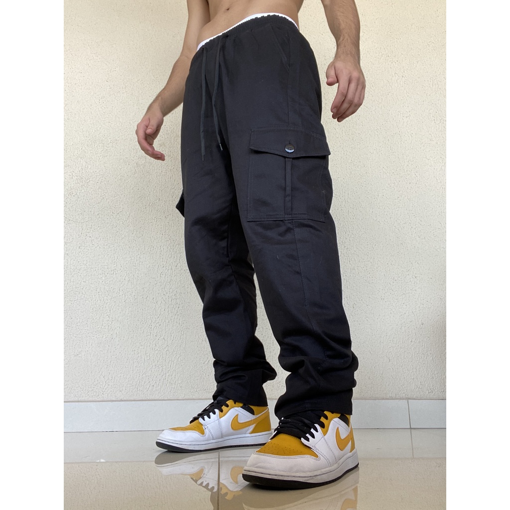 Cal a Cargo Masculina E Feminina Unissex Skatista Sarja Preta E