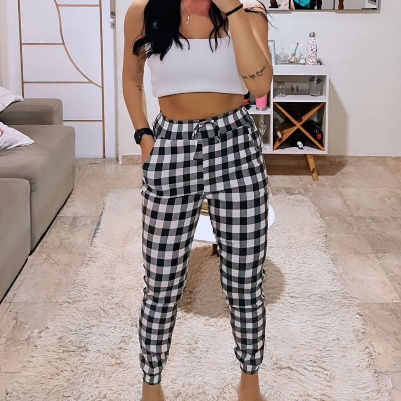 Cal a Xadrez Feminina Moda Tiktok Preto e Branca