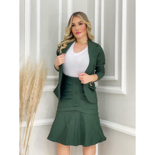 Conjunto Feminino Social Moda Evang lica Executiva Blazer e Saia