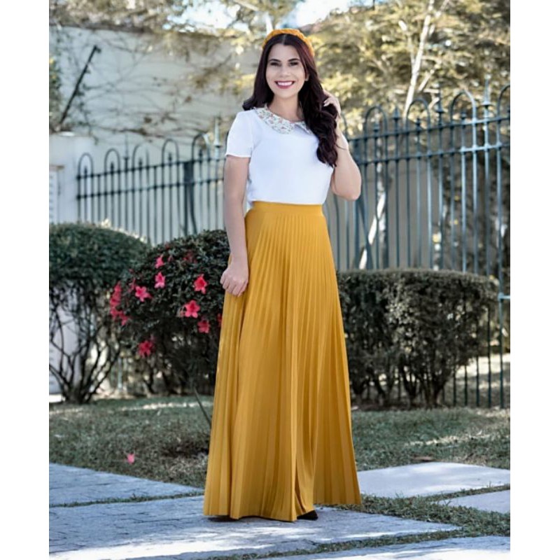 Saia plissada longa Fil Modas Saia Feminina Magazine Luiza