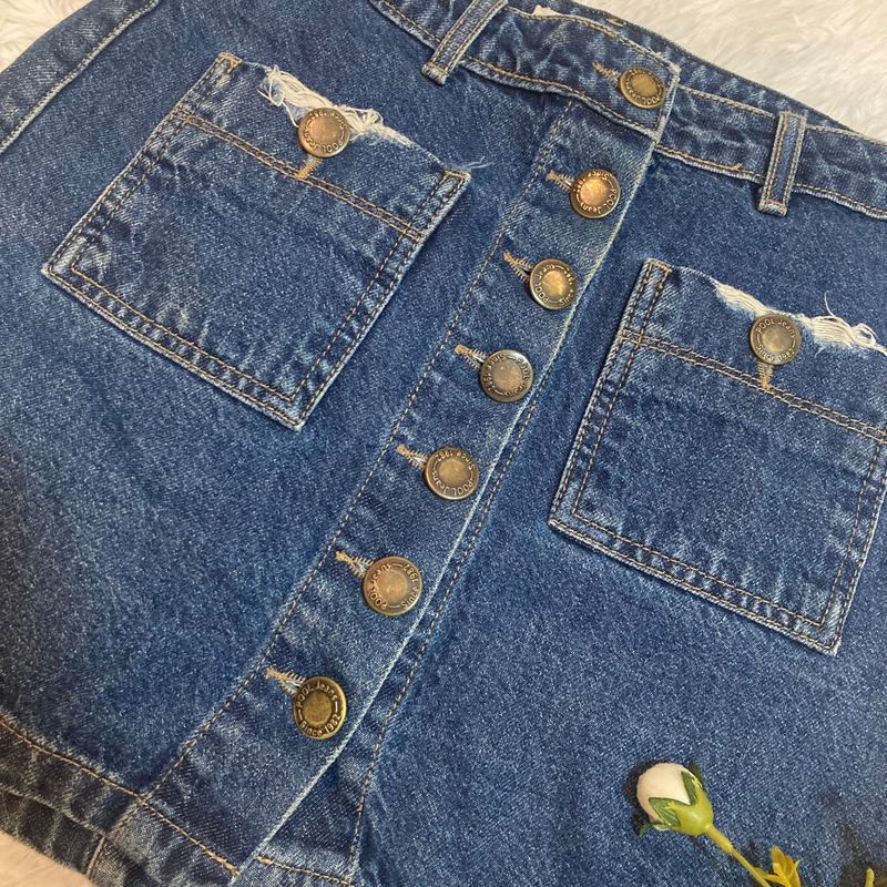 Mini Saia Jeans com Bot es Na Frente N mero 34 Saia Feminina