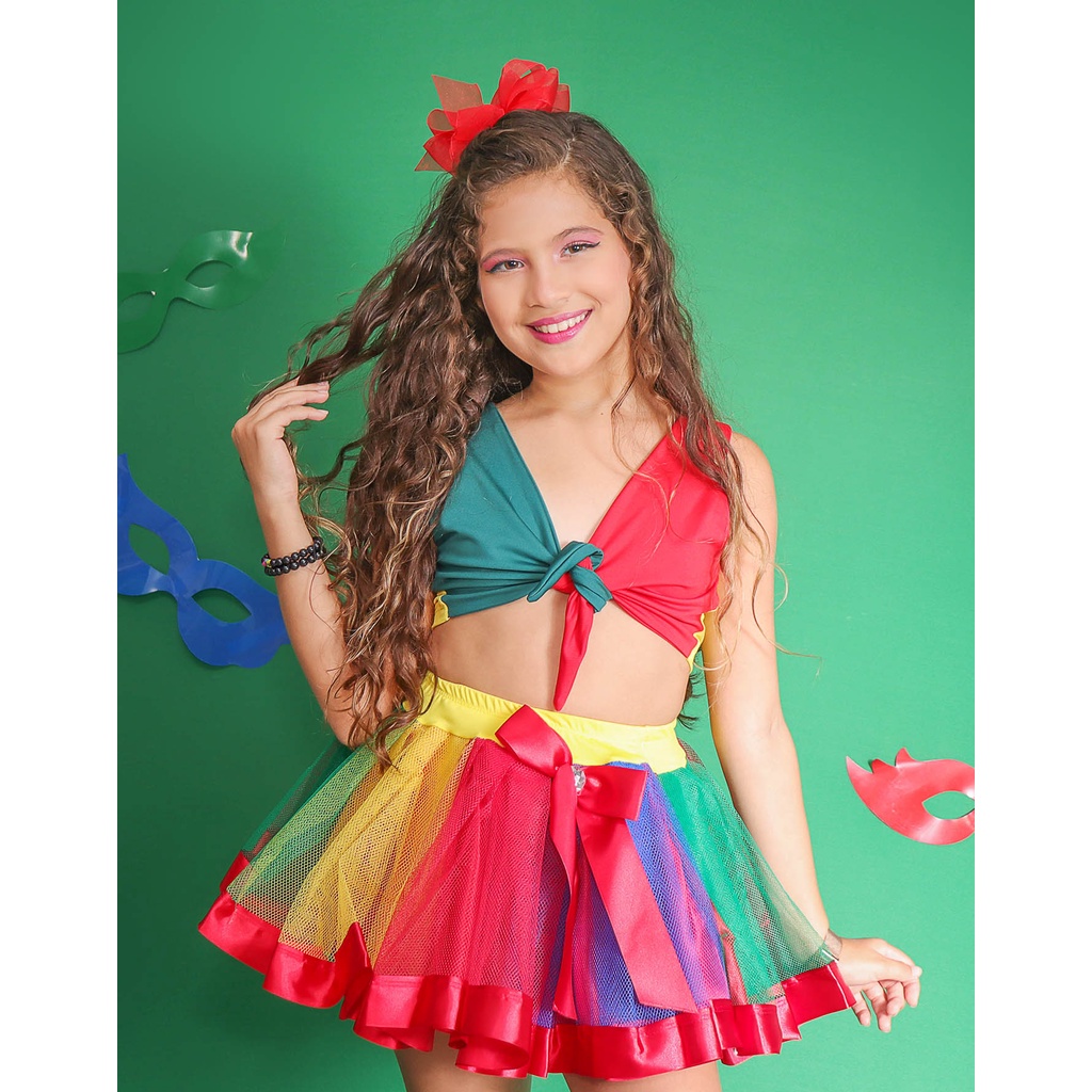 Fantasia Frevo Infantil Feminina Saia e Cropped Faixa Cabelo