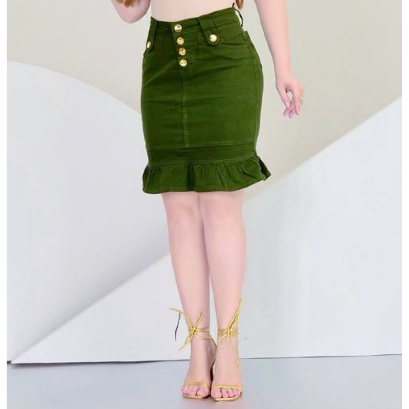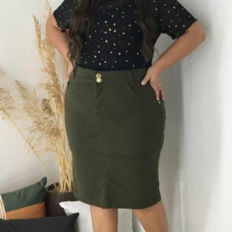 Saia Jeans midi Moda Evang lica Verde Musgo Brim tipo Napa