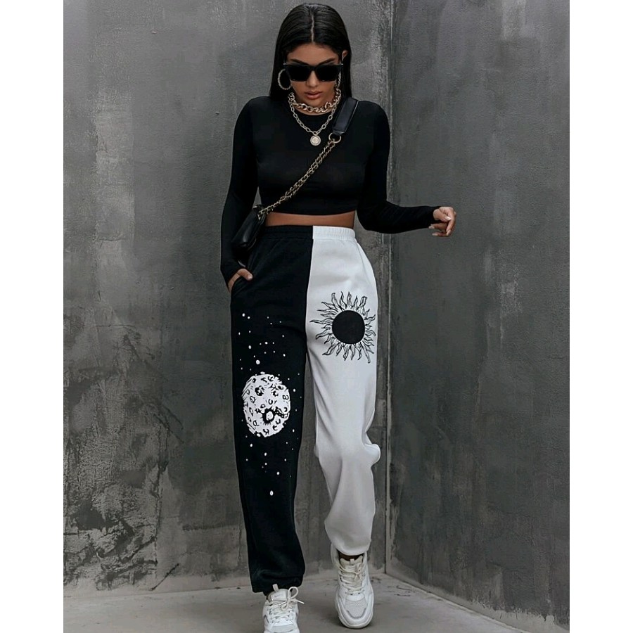 Calca Jogger Bicolor Feminina Preto e Branco Lua e Sol Variadas Moda Lan amento