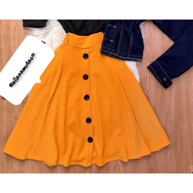 Saia midi gode clearance com botoes, Saia Midi Linho com Viscose Marrom Ferrugem Terracota Vermelha clearance