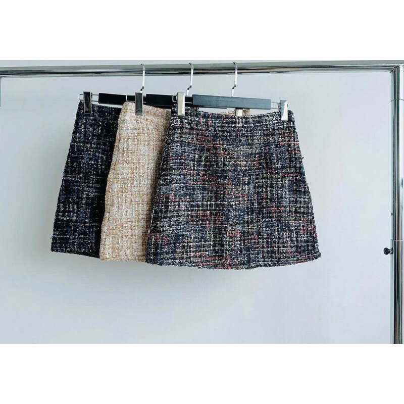 Saia Curta Lanzinha tweed Forrada Inverno Promo o Shopee Brasil