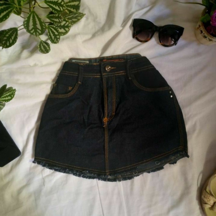 SAIA DE BICO JEANS ESCURO DESFIADA C S DUPLO