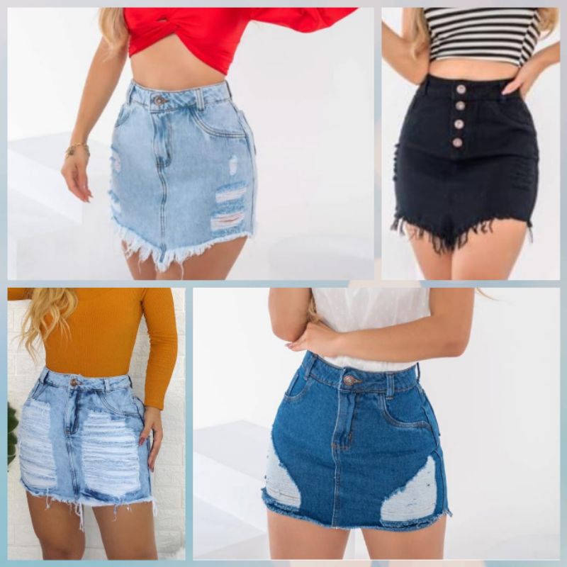 Saia Jeans Curta Destroyed Cintura Alta Desfiada V rios Modelos
