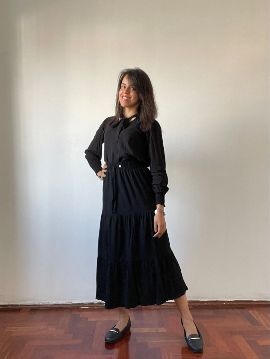 Saia modesta Saia modesta midi god em tecido oxford cor preta