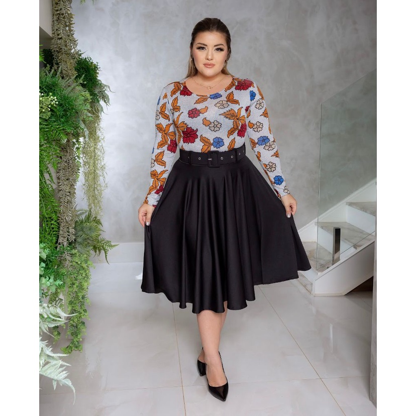 Moda evangélica saia clearance rodada, SAIA MIDI AZUL BIC ACOMPANHA CINTO Saias Via Bras Moda Evang lica clearance