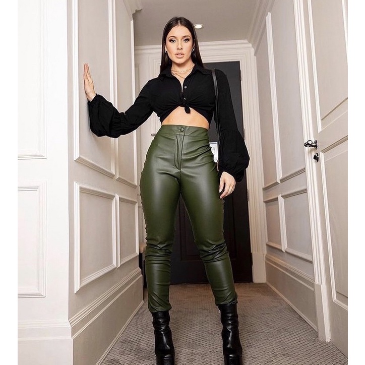 CALCA COURO MALHA RECORTES MR COURO VERDE MILITAR Meri Nuernberg